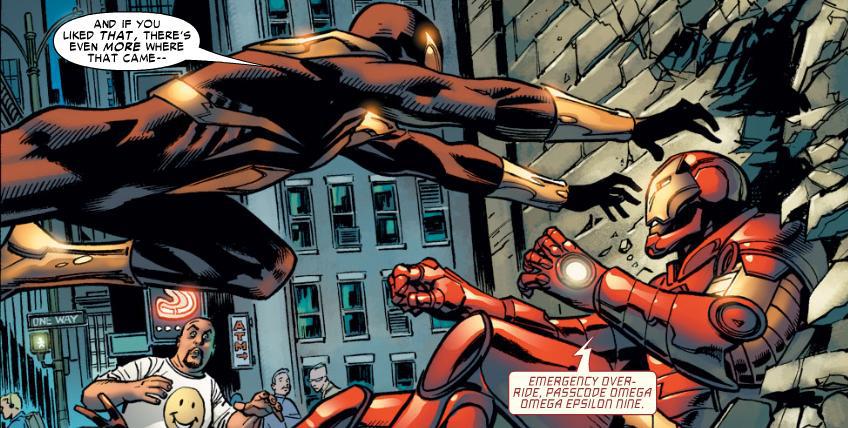 오스코프의 사장 노먼오스본이 아이언패트리어트 아머입고 쳐나타나서 베란케 여왕을 죽이고