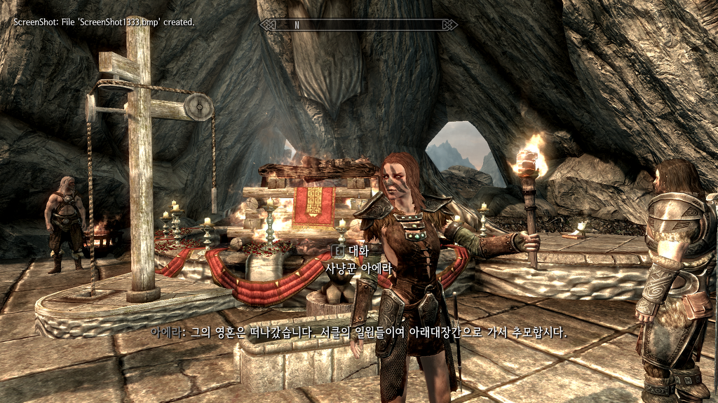 아에라 : 그의 영혼은 떠나갔습니다. 서클의 일원들이여, 아래대장간으로 가서 추모합시다.