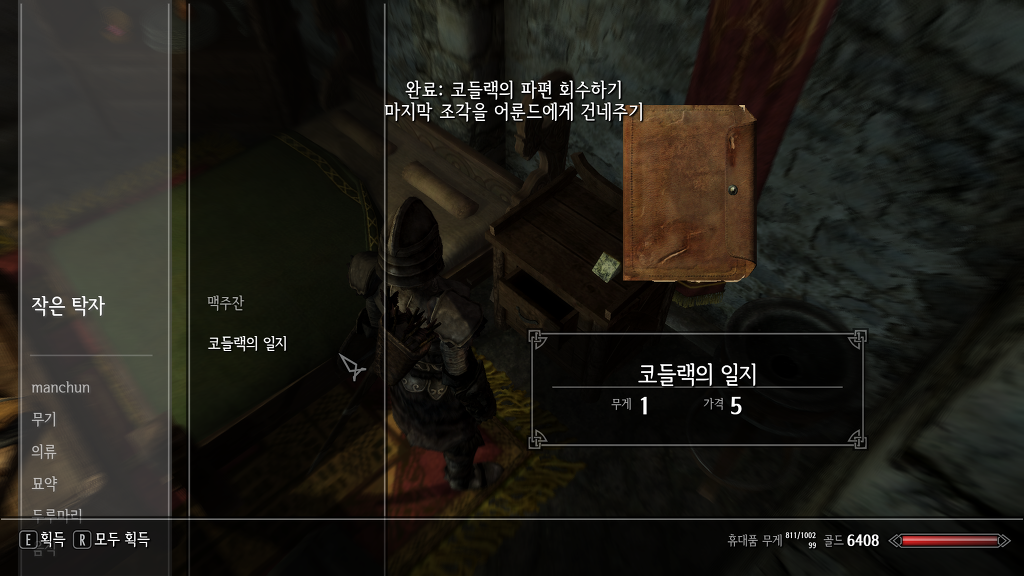 코들랙의 방에 있는 탁자에게서 '코들랙의 일지'를 입수할 수 있는데