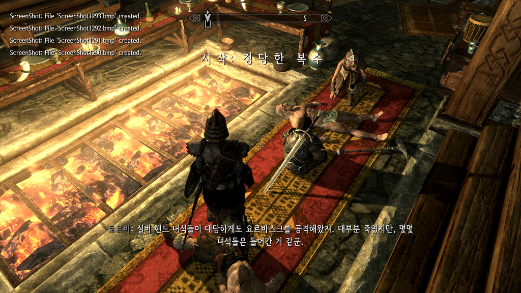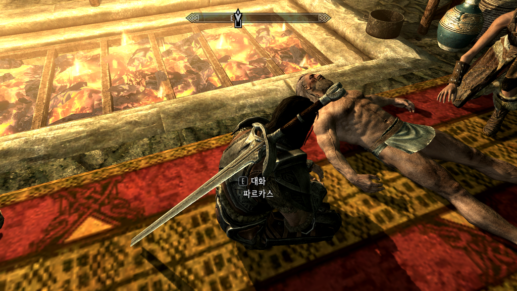 다들 쉽사리 불을 붙일 생각을 하지 못하고 코들랙의 시체만 쳐다보는 가운데, 아에라가 나서지.