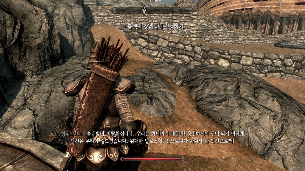 발카스 : 지금쯤 다른 이들이 코들랙의 장례식을 준비했을 걸세. 하늘대장간으로 가세나, 최후의 경의를 표해야지 않겠나.