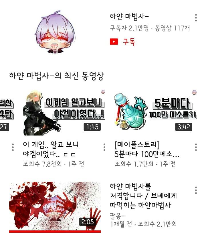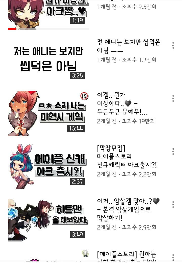 유튜브프로필,썸네일에 아헤가오그림씀 그외에도 더러운 그림 다수사용(스샷참고)