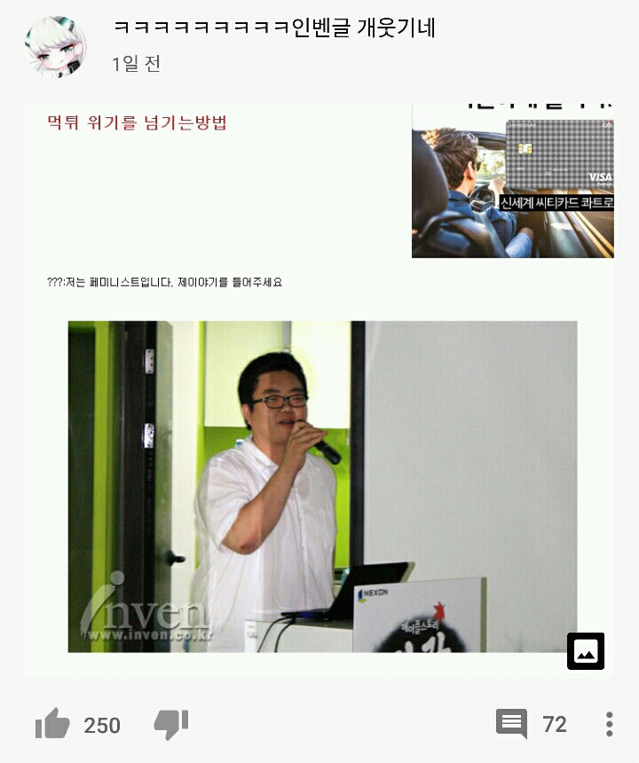 인벤에서 페미니스트조롱하는 글을 재미있다고함(스샷참고)
