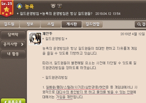 다른 길원이 쟤 메갈이니까 내쫓아달라고 요청하니까 직접 쪽지로 길드에서 나가주시오/이유는 본인이 잘 알거라 생각하오 나가시오 아러고 내쫓음 ((메달에서 봄..