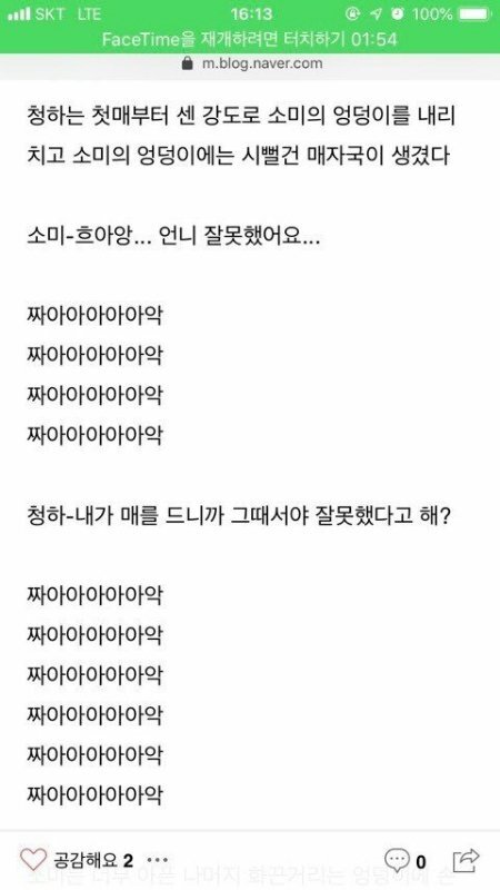 [기타]자기가 주인공인 팬픽읽은 전소미 작성자교무|작성시간20.05.04|조회수14,830 목록 댓글 66 글자크기 작게가 글자크기 크게가 짜아아아아악 짜아아아아악 다음검색 현재 게시글 추가 기능 열기 북마크 공유하기 신고 센터로 신고 댓글 댓글 66 댓글쓰기 답글쓰기 댓글 리스트 작성자리썸 | 작성시간 20.05.04 소미야 저런 거 보지 마아악!!!!!!! 작성자으이구 시 발 탈덕 | 작성시간 20.05.04 와.. 작성자ㅗㅓㅏㅓㅡㅋㅈ | 작성시간 20.05.04 아 미친; 작성자스뎅뎅 | 작성시간 20.05.04 시발.. 작성자라면중독 | 작성시간 20.05.04 안돼에... 댓글 전체보기