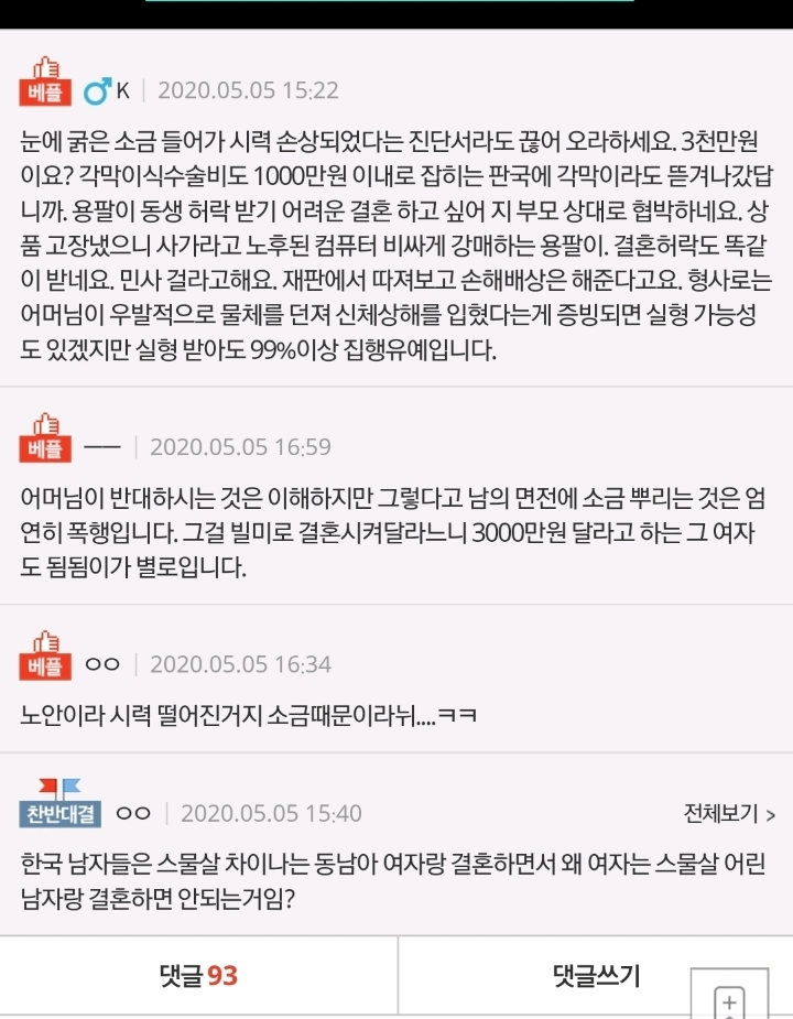엄마가 49살이거든요 엄마가 동생 여자친구에게 굵은 소금을