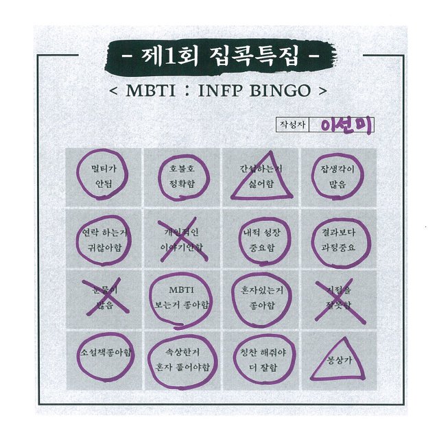빙고 원본 찾아서 해봤는데 나 하나빼고 다 동그라미넹 ㅋㅋ