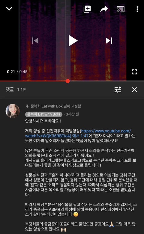 분석 결과 복희가 맛나게 먹는 소리였다네요....