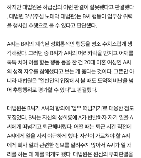 [기사]머리카락 비비며 "느낌오냐"..이랬던 상사 1.2심 무죄, 왜 작성자먬맴먜|작성시간20.05.31|조회수3,138 목록 댓글 26 글자크기 작게가 글자크기 크게가 https://v.kakao.com/v/20200531090158298무죄무새도아니고 스ㅣ~벌 법원 뭐하냐여자가 대응해서 위축감 못느꼈다고 무죄 ㅋㅋㅋㅋㅋㅋ 다음검색 현재 게시글 추가 기능 열기 북마크 공유하기 신고 센터로 신고 댓글 댓글 26 댓글쓰기 답글쓰기 댓글 리스트 작성자안데르 아론 | 작성시간 20.05.31 시발새끼 와 작성자셀레네와 엔디미온 | 작성시간 20.05.31 걍 지 전공만 오로지 그것만 아는 놈이네; 작성자릴리쨩 | 작성시간 20.05.31 시발 창놈새끼야 작성자씌앙넘 | 작성시간 20.05.31 또 덕식이니 작성자묻지마요 저도몰라요 | 작성시간 20.06.01 무슨의도로 저런 행동한건데 댓글 전체보기