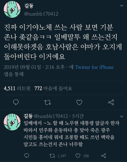 작성자한 내음 작성시간 20.06.13 괜히 사투리 쓰던 사람도 신경쓰임