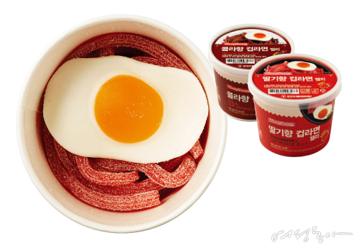 계란후라이가 올라간 컵라면 젤리! 단맛보다는 신맛이 많이 강한 편이라고 함 ㅋㅋ