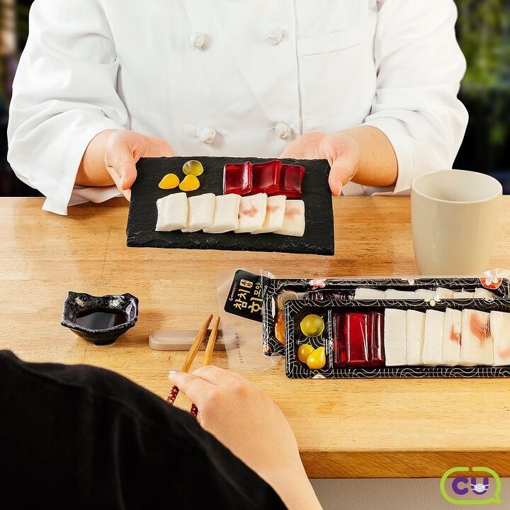 참치회와 고추냉이까지 젤리로 나왔다는데~ 실제로는 생선이 아닌 딸기 맛과 복숭아 맛이 난다고 함!