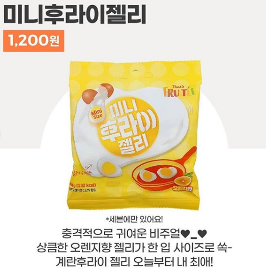 계란 후라이 모양의 젤리가 작아진 크기로 나왔다는데~ 기존에 질긴 계란 후라이 젤리들보다 부드럽다고 함