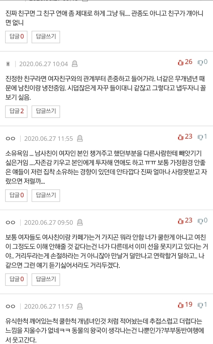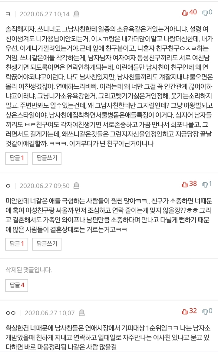 작성자순돌토돌삐돌멍돌곰돌 작성시간 20.07.11 자기들이 문제없이 만나고 있으면 남 말에 휘둘릴 필요 없음