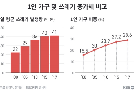 1인당 쓰레기, 1인 가구가 4인 가구보다 2배 많아