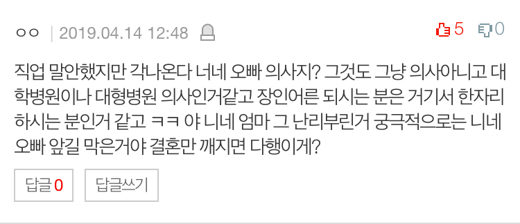 작성자입닫고빵이나먹어. 작성시간 20.07.01 의사아들믿고 쎄게 나갔나본데ㅋㅋㅋㅋㅋ