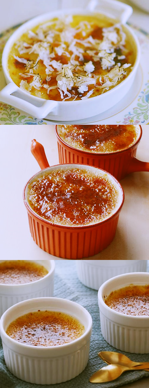 차가운 크림 위에 설탕을 뿌리고 불에 그을려서 캐러멜화 시킨 것