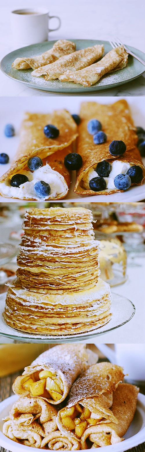 크레이프와 비슷하지만 반죽에 보통 밀가루가 아닌 메밀이 들어가서 거무스름 한 것이 특징
