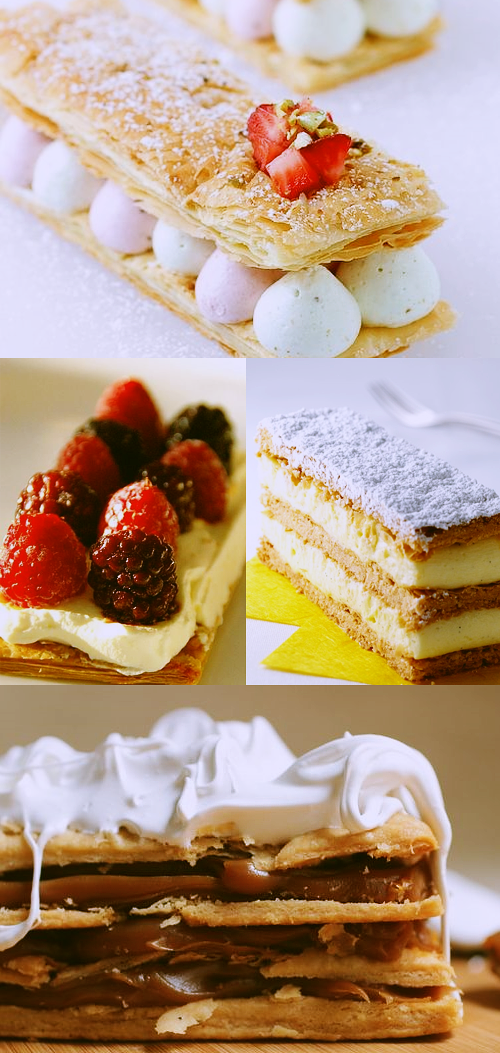천 겹의 잎사귀란 뜻으로 여러 겹을 이루는 달콤하고 바삭한 프랑스의 고급 디저트