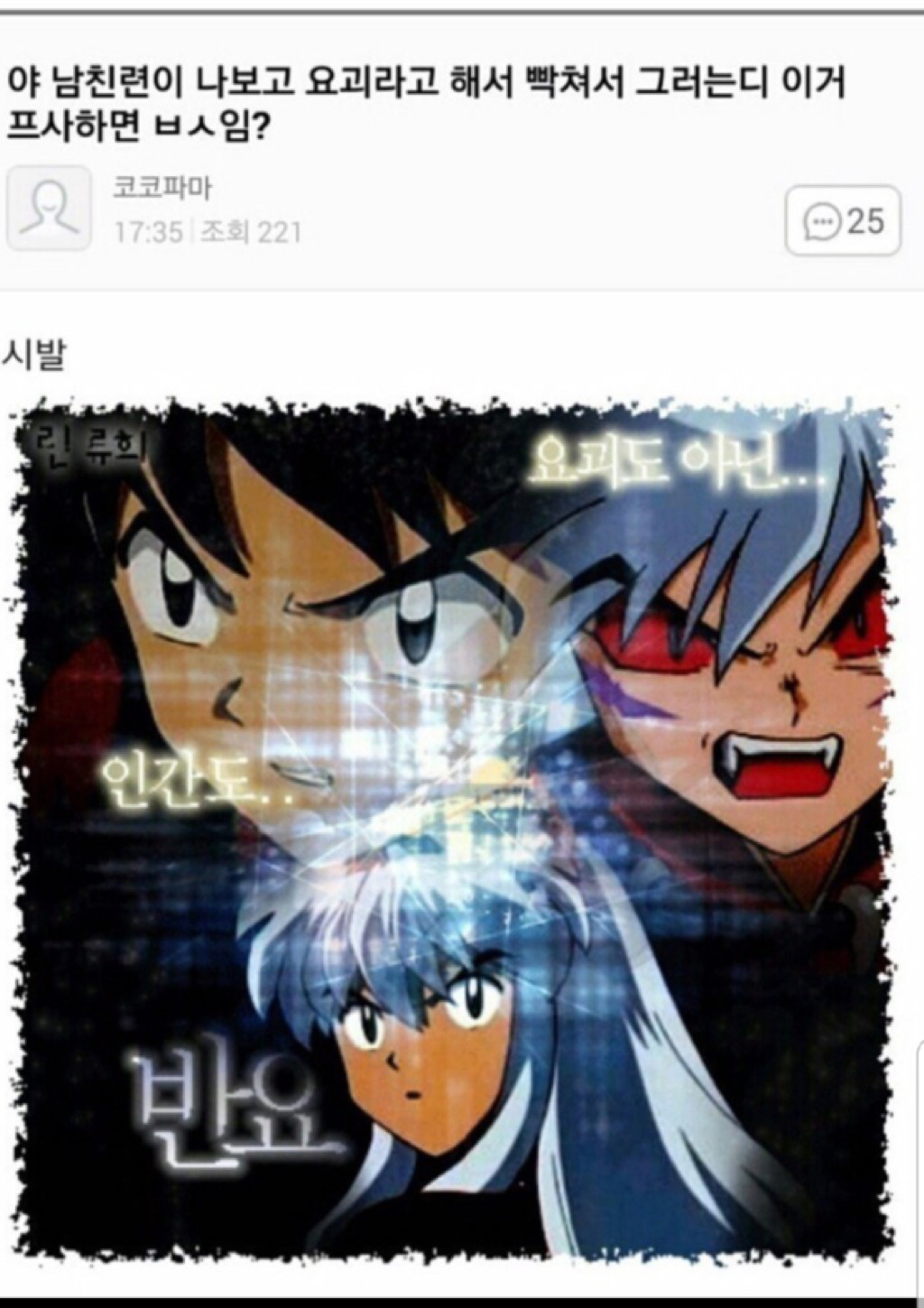 작성자強明瑩 작성시간 20.07.20 인간도.. 요괴도 아닌.. 반요ㅋㅋㅋㅋㅋㅋㅋㅋㅋㅋㅋㅋㅋㅋㅋ