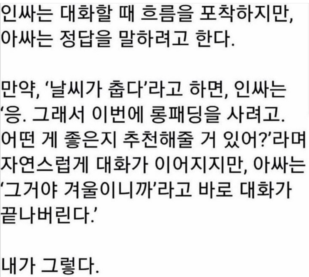 작성시간 20.07.31 그런 성격도 있겠지만 말 이어나가기 싫어서도 일듯ㅋㅋㅋ 나도 대화하기 싫을 땐 그러게요~ 하는데 아닐 땐 그니까요 그래서 코드 사려고 봐둔거 있어요 라던가 이런날에 뜨끈한거 먹으러 가야되는데 등등 하겄지..