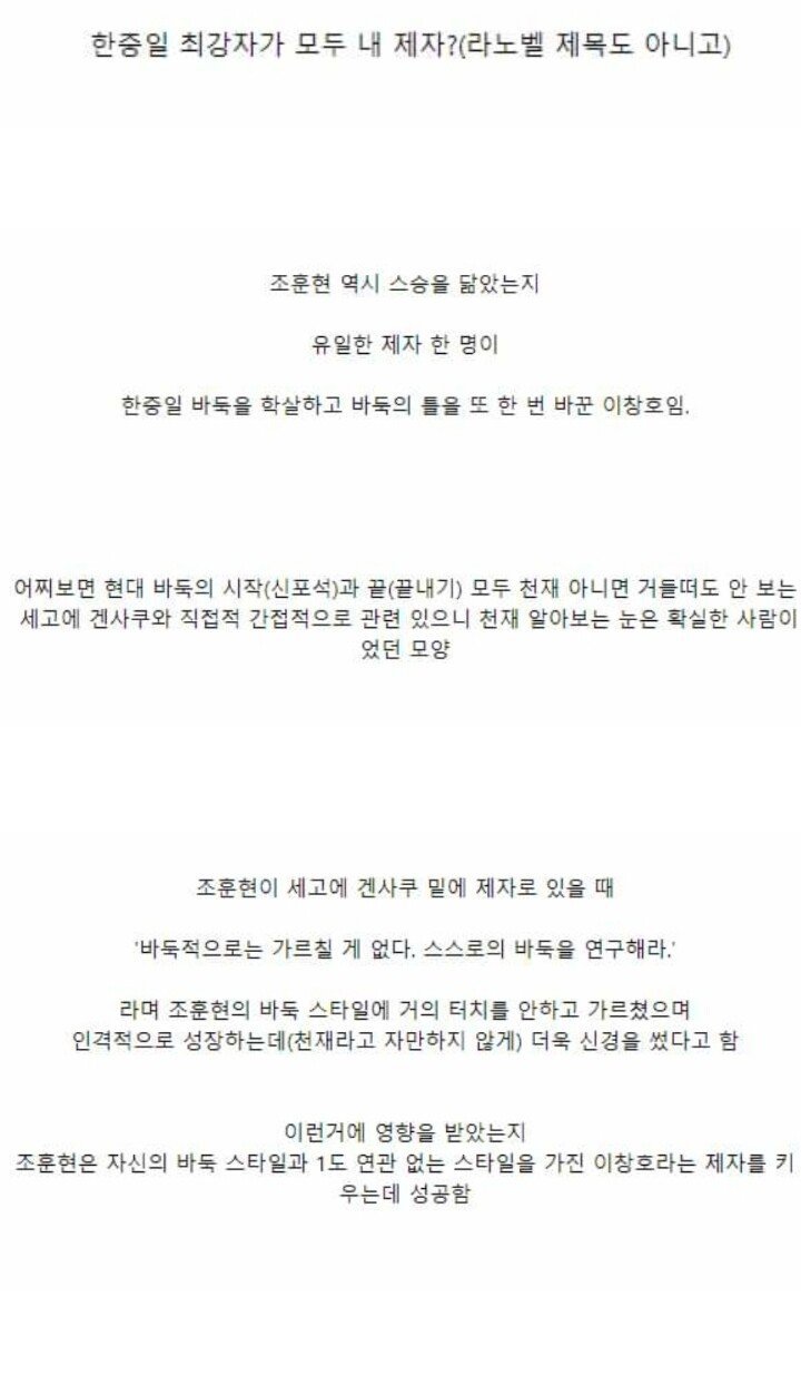 그가 가장 아끼던 제자는 조훈현이였으며
