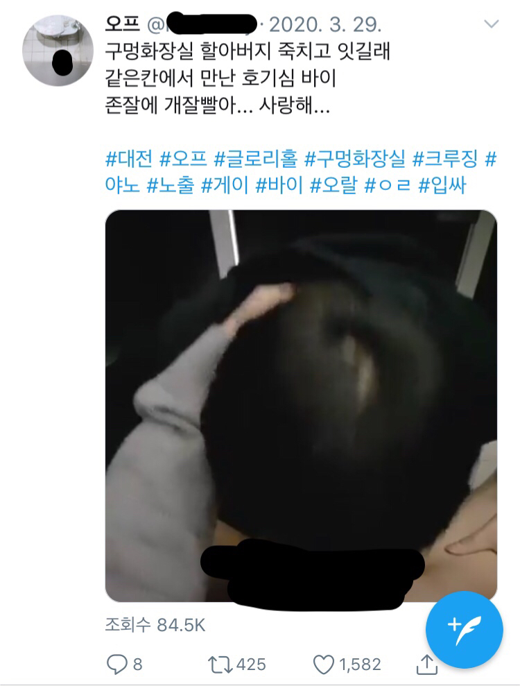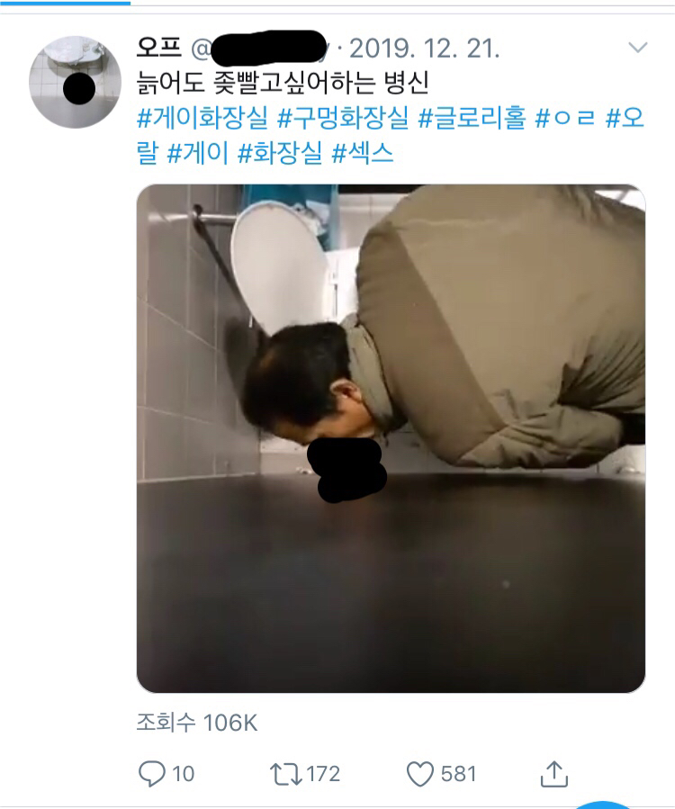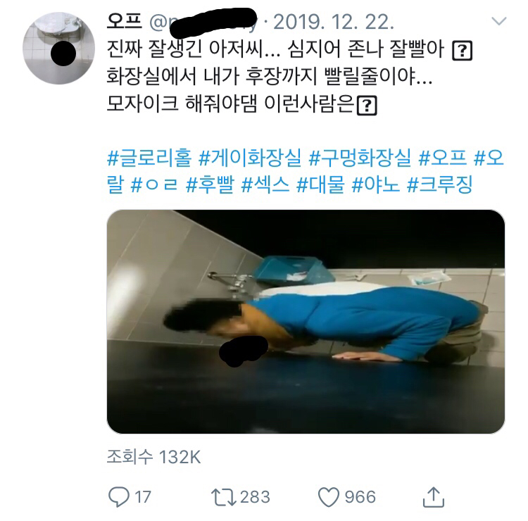[스크랩] [기타]남자 화장실 벽에 큰 구멍이 뚫려있는 이유.jpg 작성자엄 태구|작성시간20.08.19|조회수27,582 목록 댓글 109 글자크기 작게가 글자크기 크게가 소울드레서는 우리가 함께 만들어가는 소중한 공간입니다.댓글 작성 시 타인에 대한 배려와 책임을 담아주세요.@ 글로리홀, 구멍 화장실이란?뚫린 구멍에 성기를 넣으면 반대편에 있는 게이가 성기를 입으로 빨아줌. 서로 맘에 들면 섹스까지 한다고 함*** 아래 사진에서 검은칠한 부분은 성기 가린거긔! 다음검색 스크랩 원문 : 소울드레서 (SoulDresser) 현재 게시글 추가 기능 열기 북마크 공유하기 신고 센터로 신고 댓글 댓글 109 댓글쓰기 답글쓰기 댓글 리스트 작성자그랜드피아노 | 작성시간 20.08.19 으 진짜 더러워 역겹다 작성자너 나 사랑해? | 작성시간 20.08.19 실제야 저거..?뭔소리야진짜... 아나진짜 너무 충격적임... 작성자김고딩과 압구정모 | 작성시간 20.08.19 구멍이 존나 작잖아 작성자해리웅앵 | 작성시간 20.08.19 구멍... 직경이.... 짧네 작성자오렌지태양 | 작성시간 20.11.17 Wow.. 댓글 전체보기