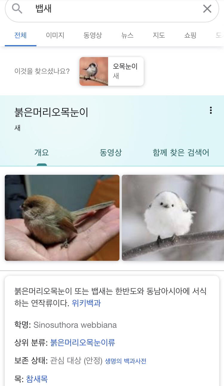 구글에도 뱁새 검색하면 붉은머리오목눈이가 나온다고한다