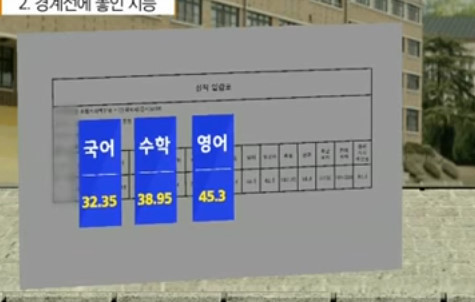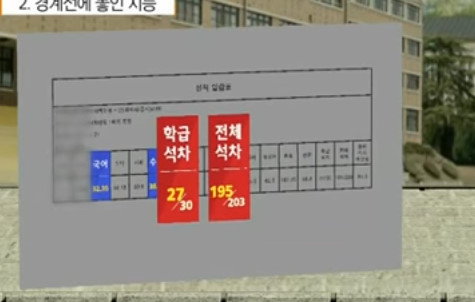 이 학생의 주요 과목은 죄다 낙제점이고, 학급석차도 30명중 27등 / 전교석차 203명중 195등 /