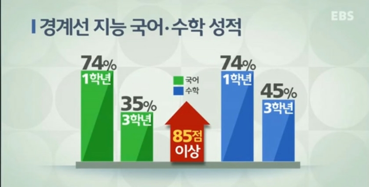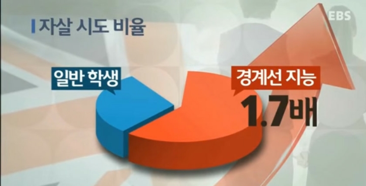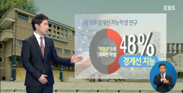 미국의 위험군으로 분류된 48%가 경계선 지능이고, 학교 자퇴율이 일반학생의 10배 수준이라고 한다.