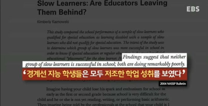 미국에서 연구를 해본결과 경계선 지능학생이 특수교육을 받는게 득일까 일반인과 함께 일반교육을 받는 실험을 해본결과