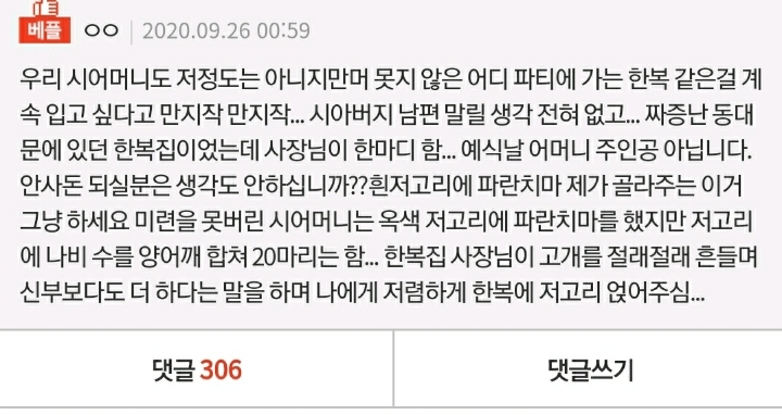 [판&톡]시어머니 눈엔 이게 혼주 한복인가봅니다