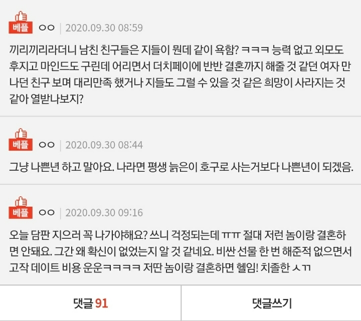 작성자오늘도 좋은 하루~^^ 작성시간 20.10.03 미친놈 ㅠ