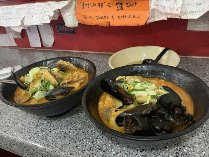 작성자수박통통 작성시간 20.10.09 이거 홍합짬뽕인가가 개매운거고 차돌짬뽕은 그래도 덜맵고 먹을만하다고 알려주셔서 친구랑 차돌짬뽕 먹었었는데 맵긴했는데 맛있었어 홍합짬뽕은 국물 함 먹어보라고 갖다주셔서 친구랑 한입씩 살짝 먹고 매워서 개놀램ㅋㅋㅋㅋㅋㅋ