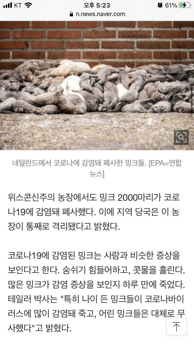 작성자하가가사가가가가 작성시간 20.10.12 안타깝고 큰일인데..밍크 입장에선 차라리 저렇게 천국가는게 나을 수도 있다는 댓글 생각나네
