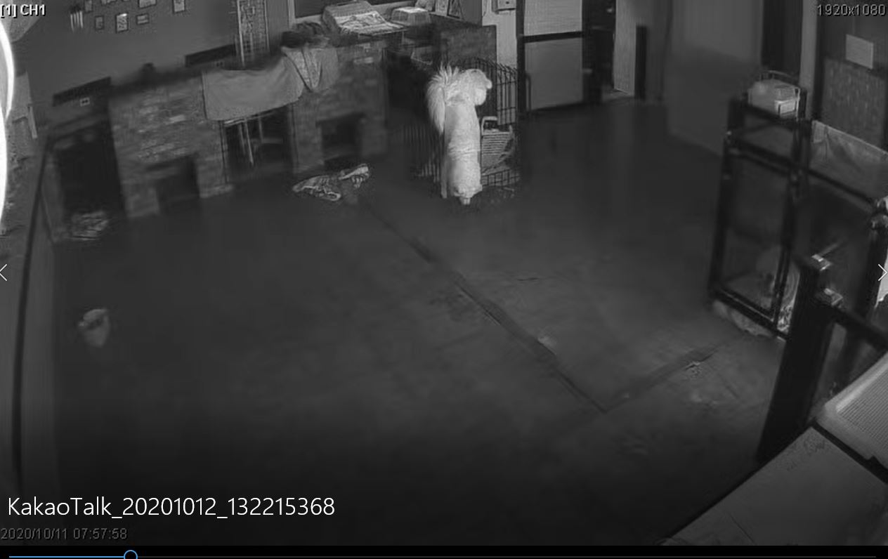 물도, 사료도 없이 16시간을 계속 갇힌 채로 울부짖고 몸부림 칩니다. 계속 움직이니 CCTV에도 움직임이 계속 포착이 되었습니다.