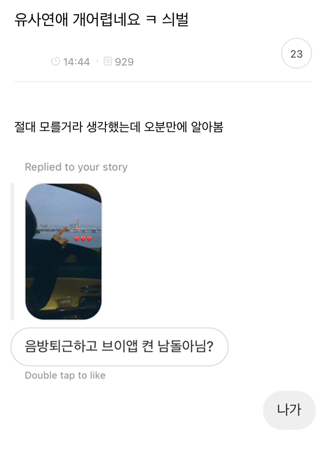 인스타스토리에 애인인척 남돌 사진 올렸는데 친구가 알아본 거임