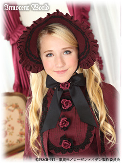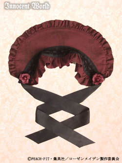 로리타 양복의 꽃인 헤드 아이템이에요. 감계에서 많이 쓰이는 리본 머리띠 카추샤, 레이스와 리본으로 이루어져 턱 밑으로 묶는 헤드 드레스, 로코코 시대의 모자를 그대로 본뜬 보닛 등이 있어요.