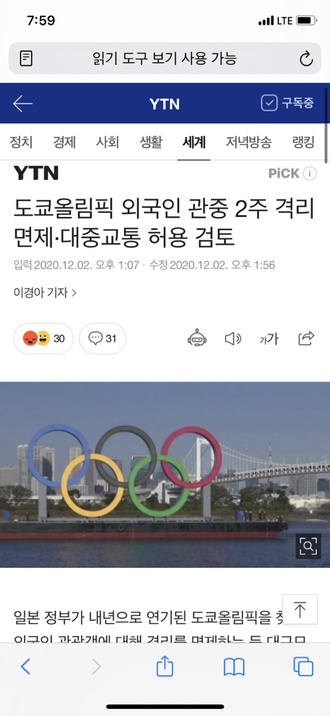 일본 정부가 내년으로 연기된 도쿄올림픽을 찾는 외국인 관광객에 대해 격리를 면제하는 등 대규모 입국을 허용하는 방향으로 검토하고 있는 것으로 나타났습니다.