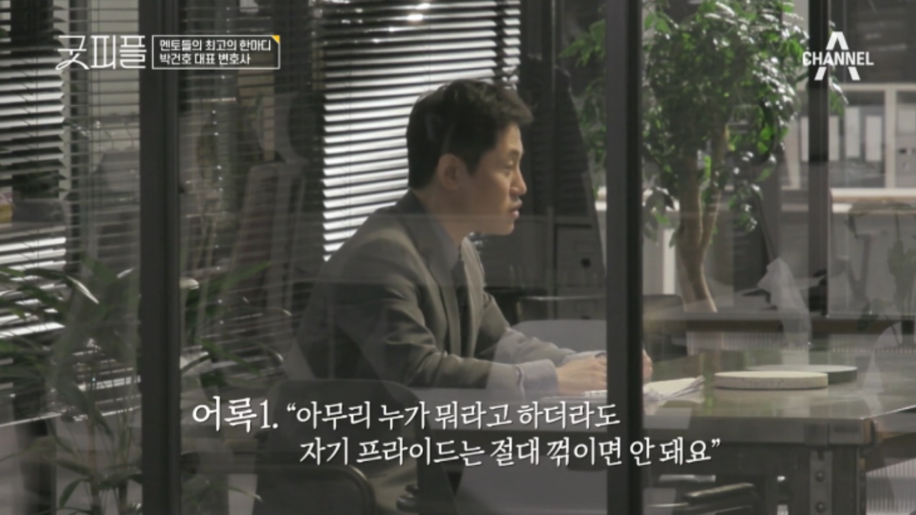 (전체 장면을 잘라온 게 아니라 조언하는 장면 중에서도 딱 명언 일부만 잘라왔어요 전체적인 명언 내용이 궁금하다면 굿피플 봐 주세요 재밌어요)