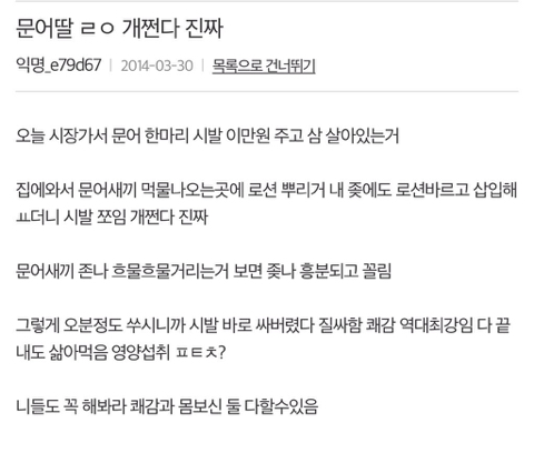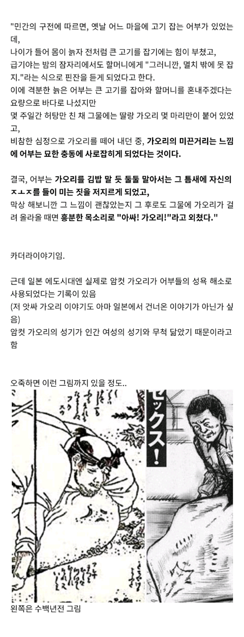 이거 말고도 못 가져온 끔찍한것들이 많아 말이 좋아 자위지 가오리,문어,잉어 등 생물은 수간이잖아?