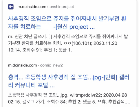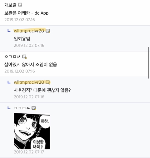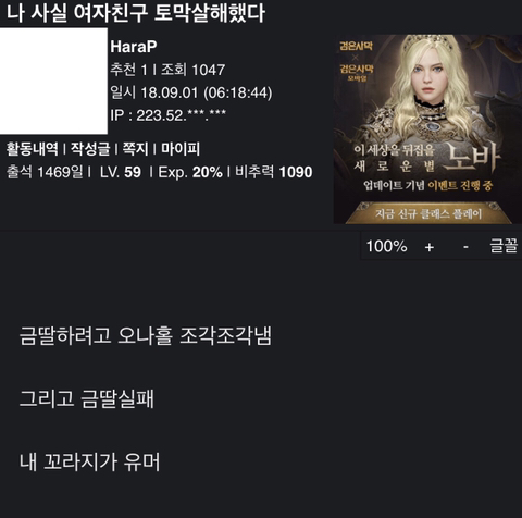 죽은 캐릭터 사진 올려놓고 사후경직 운운하며 조임 이야기 중