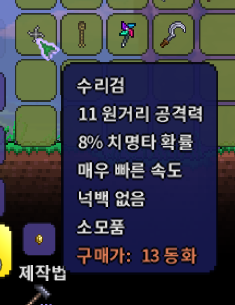 납을 맞췄다면 수리검을 사도록 합니다.