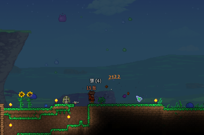 슬라임들이 하늘에서 우르르 떨어져요.