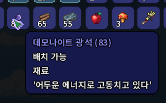 데모나이트 광석으로 데모나이트 주괴를 만들 수 있고