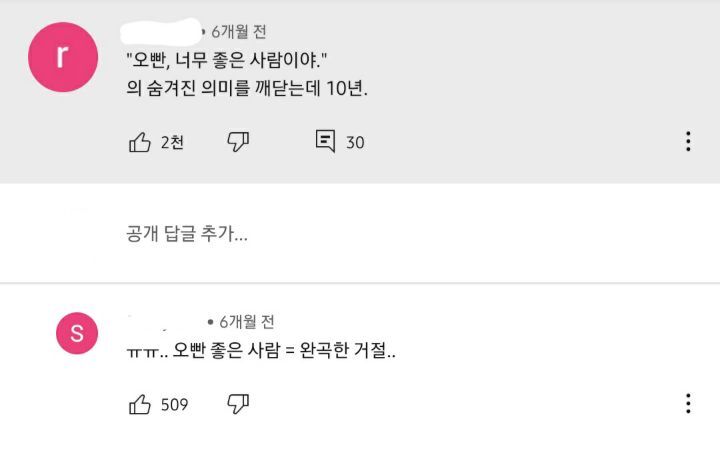 이는 화자를 이성적인 존재로 대하는 게 아니라 정말 '좋은 사람', '좋은 오빠'로 대하고 있는 걸 뜻하지...