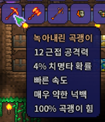 그 전에 지옥에서 캐온 지옥석으로 곡괭이를 업그레이드 해줍시다.