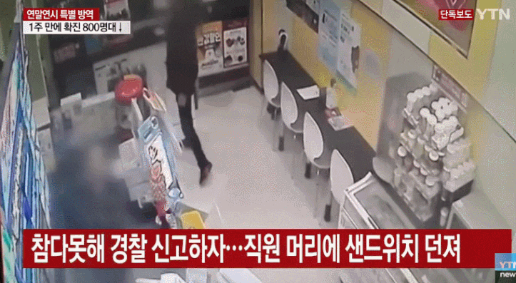 [스크랩] [기타]밤 9시 넘으면 편의점 취식이 안 된다고하자 샌드위치 던진 남성.GIF