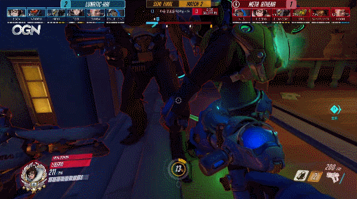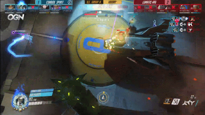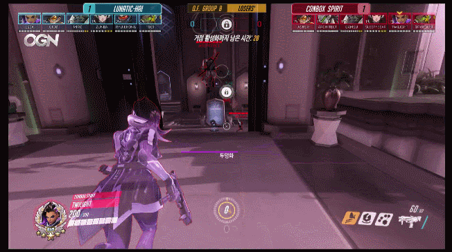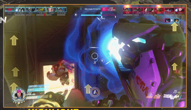 솜브라 EMP 피해서 무빙 후 카운터 방벽쓰는 루시우 (퓨즈)