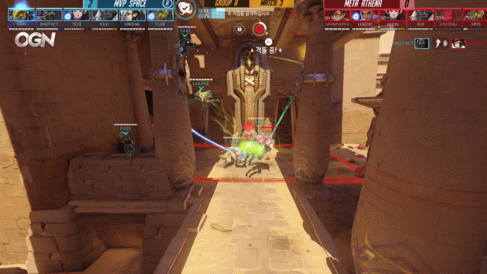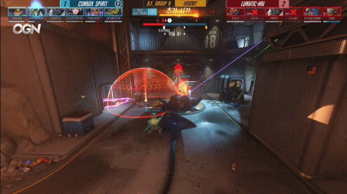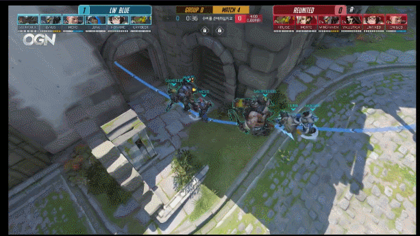 그렇기때문에 시작하자마자 모두 아래로 달려가서 아래에서 한타가 벌어짐. 참고로 힐팩은 루나틱하이가 해킹)